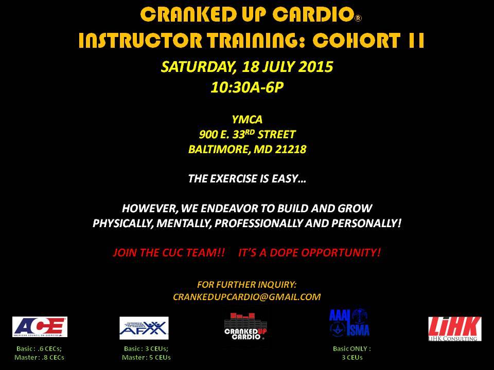 Cranked Up Cardio® is an ACE and AFAA approved curriculum!! We are able to train instructors to represent the culture, anywhere in the Nation!! Do you have a love for fitness or dance and want to change lives while you enjoy yourself and develop your business? Become a part of our team!!