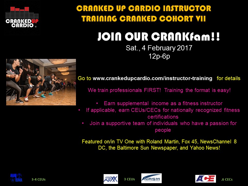 Instructor Training – 4 February 2017 By admin On December 26, 2016 · Add Comment Share Cranked Up Cardio: